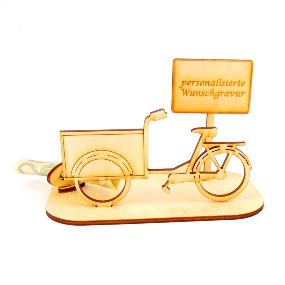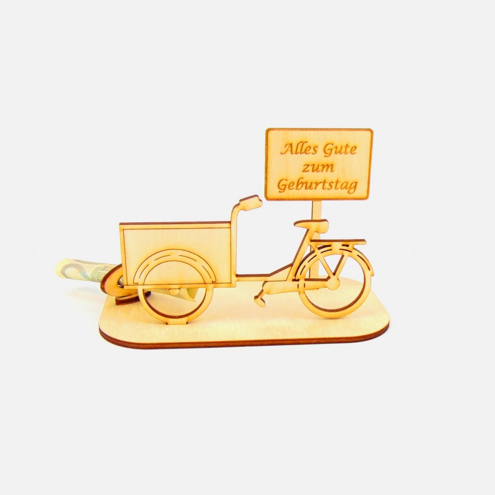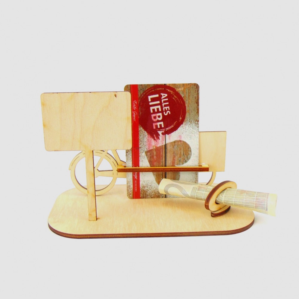 Lastenrad mit verschiedenen Ortsschilder Geld- Gutscheingeschenk