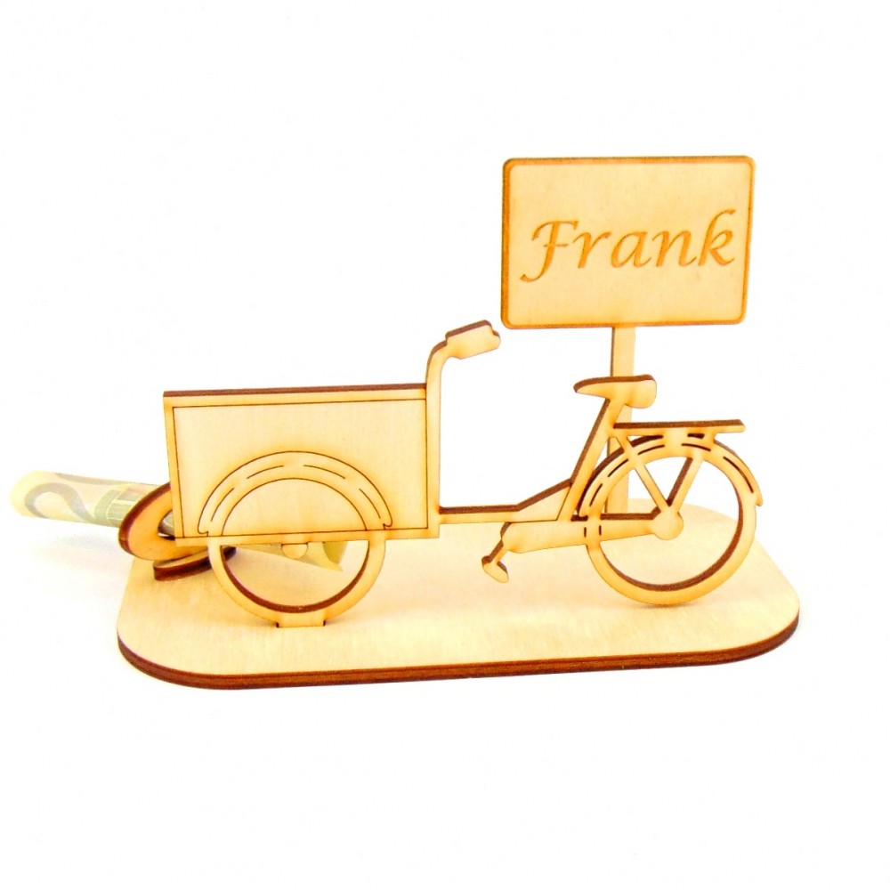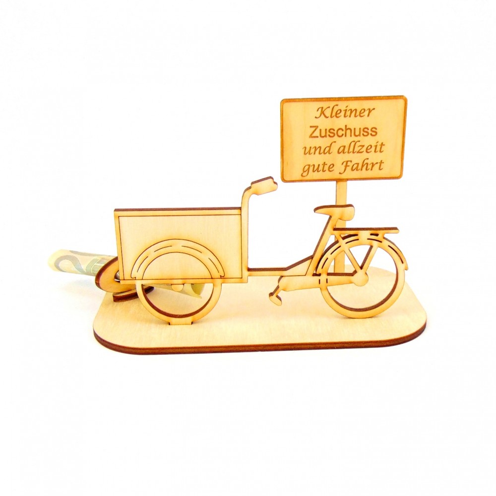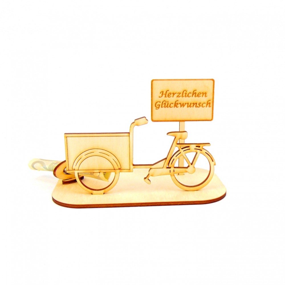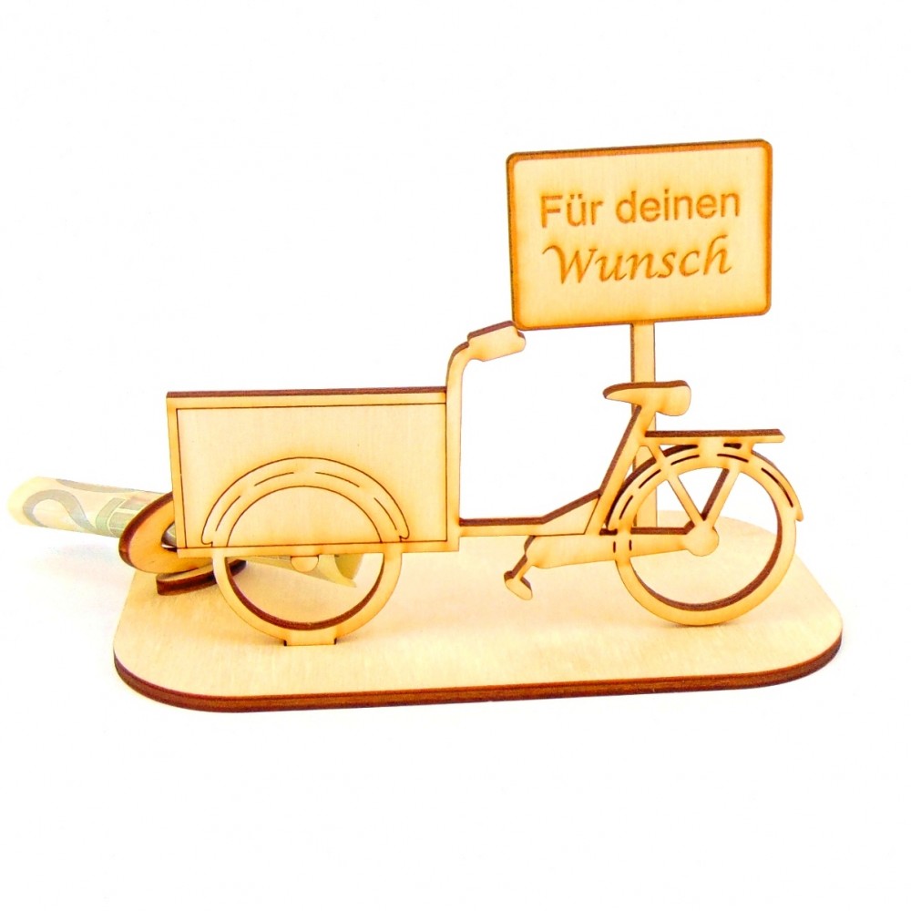 Lastenrad mit verschiedenen Ortsschilder Geld- Gutscheingeschenk