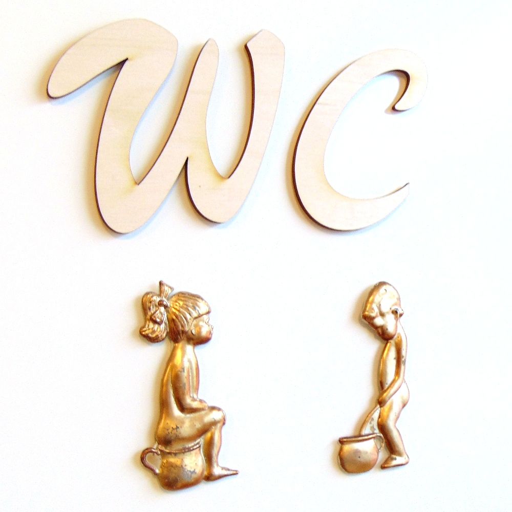 "BESUCHER WC", auf orangem Untergrund, mit einem WC-Häuschen.