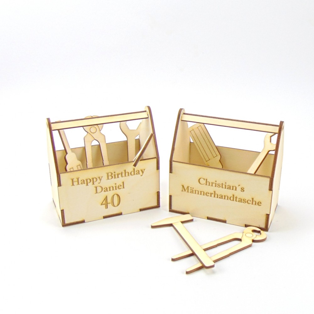 Werkzeugkiste mit Werkzeug aus Holz, Männerhandtasche, Geschenk für Männer