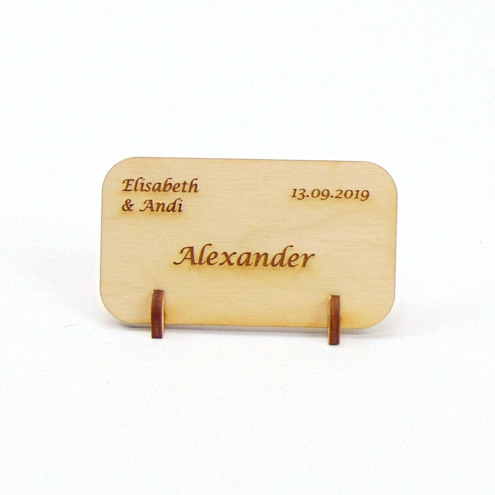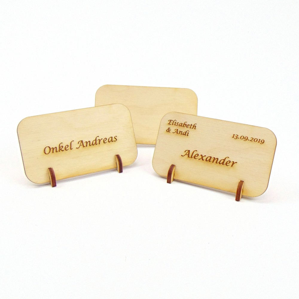 Tischkarten ohne Gravur, mit Namensgravur oder mit individueller Gravur.