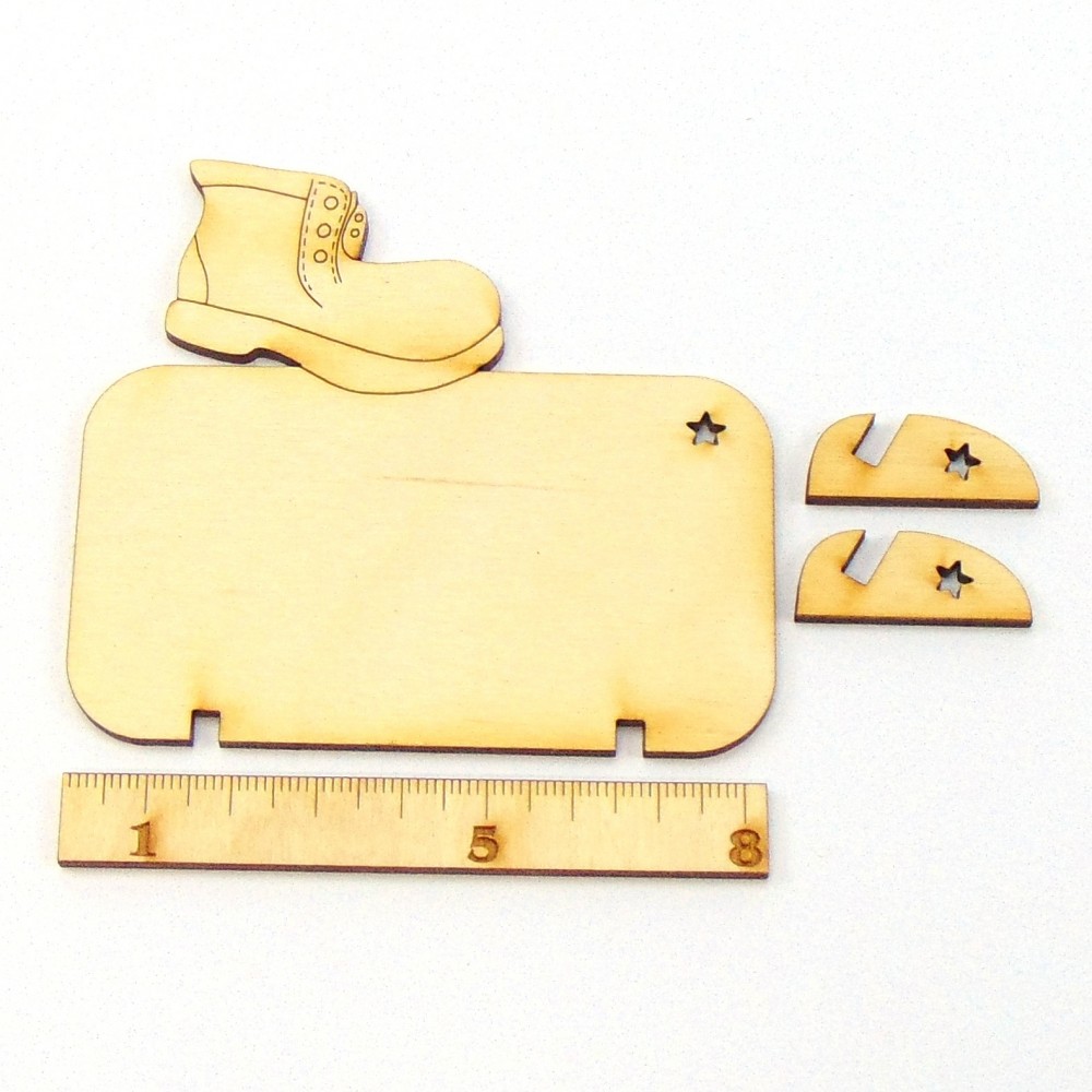 10 Stiefel aus 3 mm heimischem Birkenholz in einer Höhe von 15 mm und Breite von 24 mm. Der Ni..