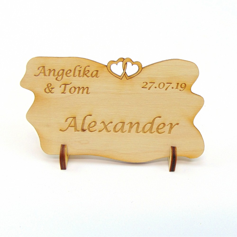 Stehendes Namensschild mit 2 Herzen