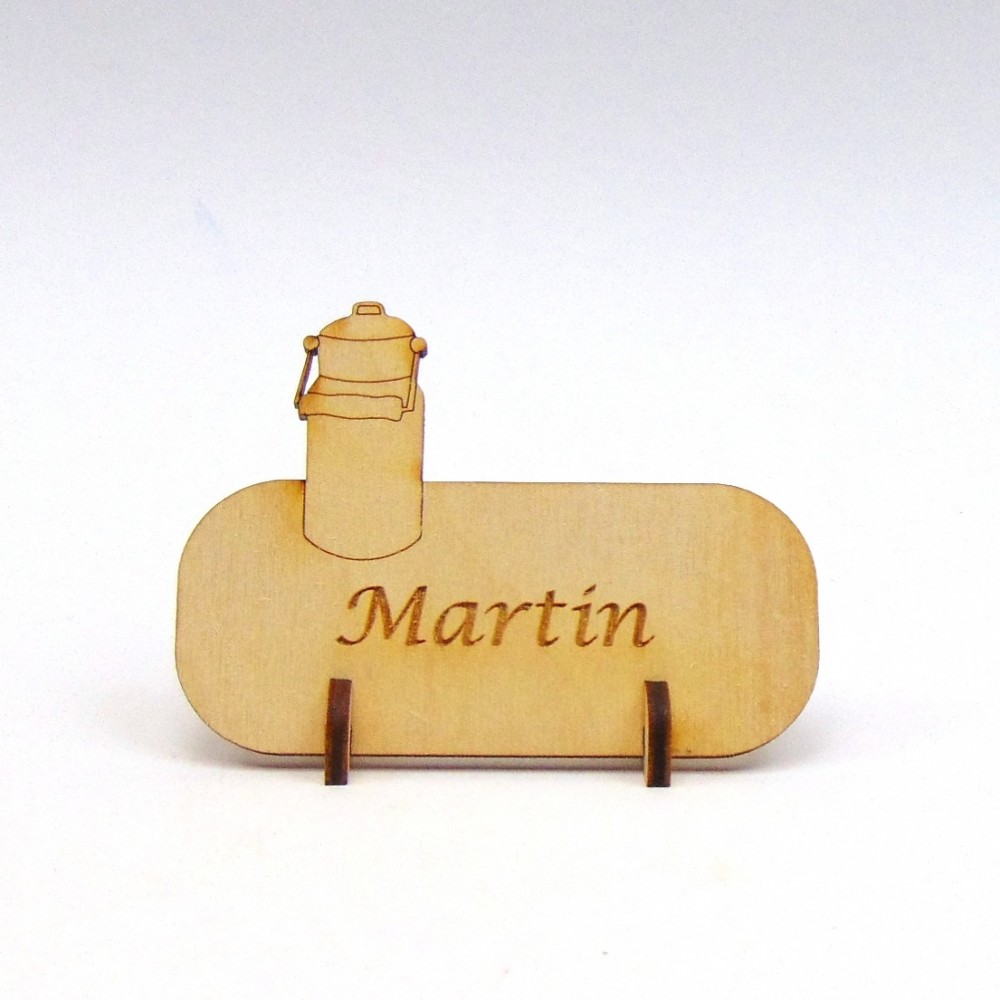 1 Stehendes Namensschild mit Milchkanne zum Beschriften als Platzkarte