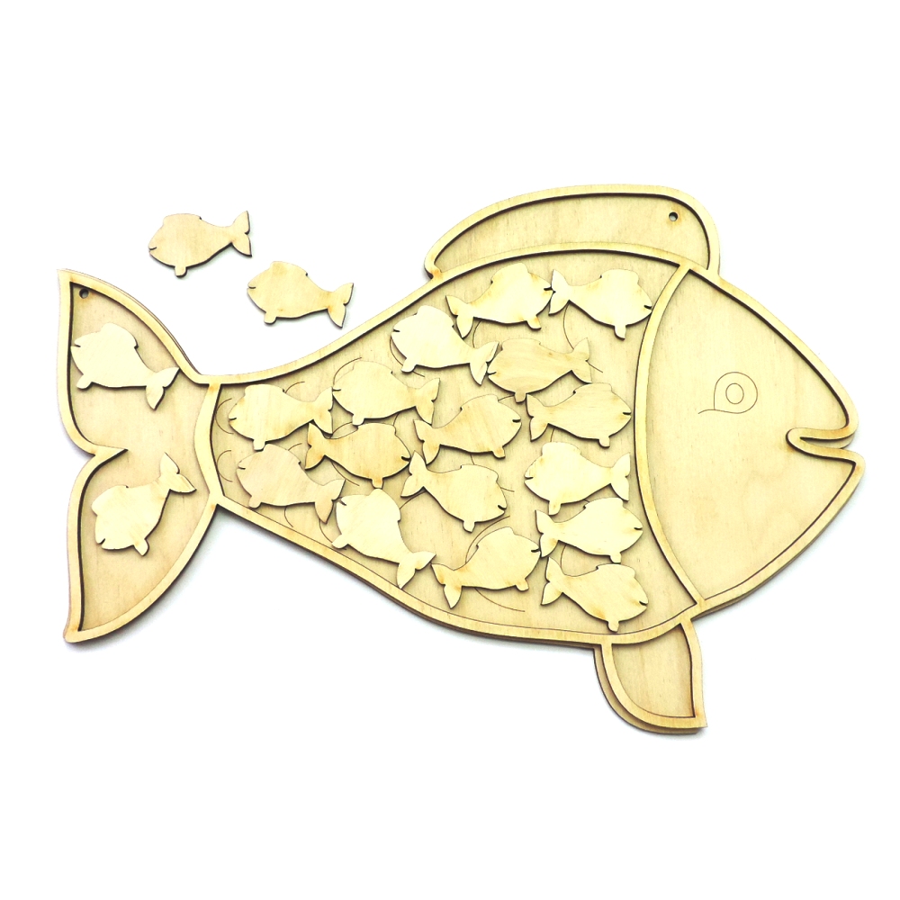 20 kleine Fische zum Beschriften sind dabei, dort können die Gäste die Glückwünsche Schreiben oder die Namen was auch immer man möchte.