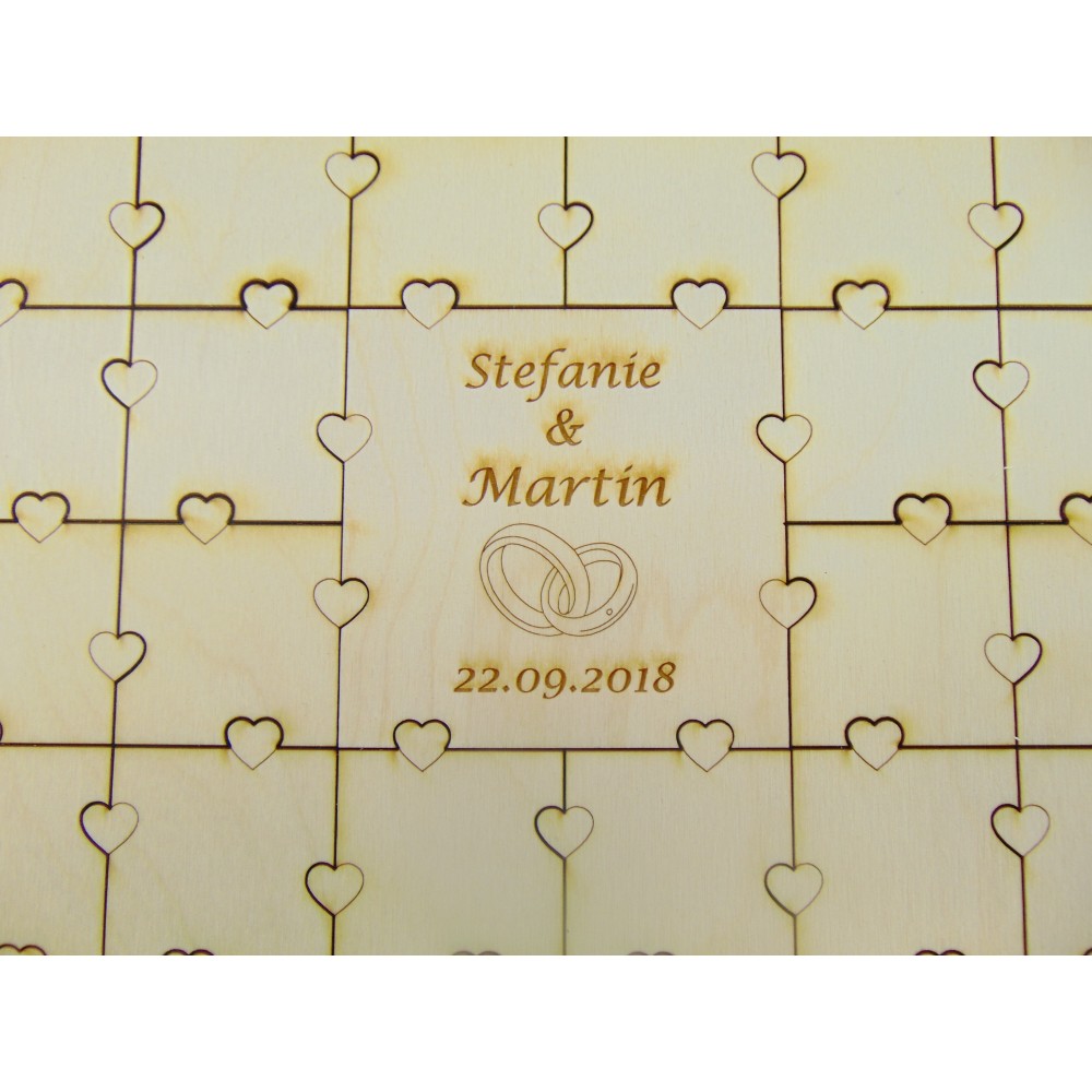 Dieses Hochzeitspuzzle hat 45 Teile. Die einzelnen Puzzelteile haben eine Größe von 50mm x 50mm. ..