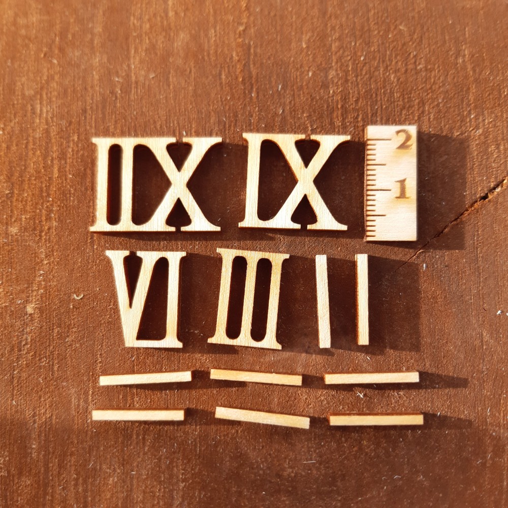Römische Holzziffern aus 3mm Birkenholz, Höhe 19mm