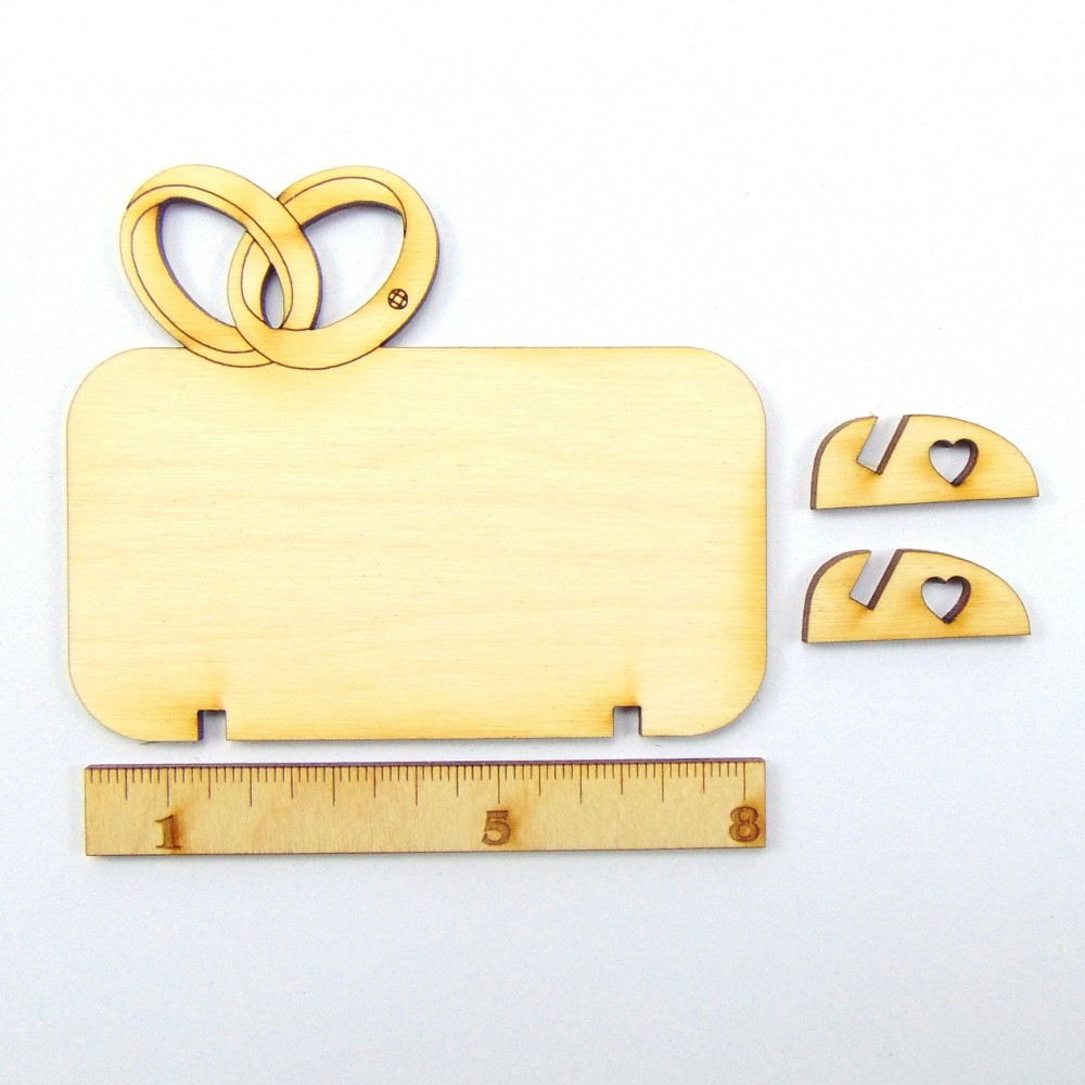 2 Eheringe ineinander verschlungen aus 3mm Birkenholz, Höhe 32mm, Breite 50mm. 2 Eheringe ineinand..