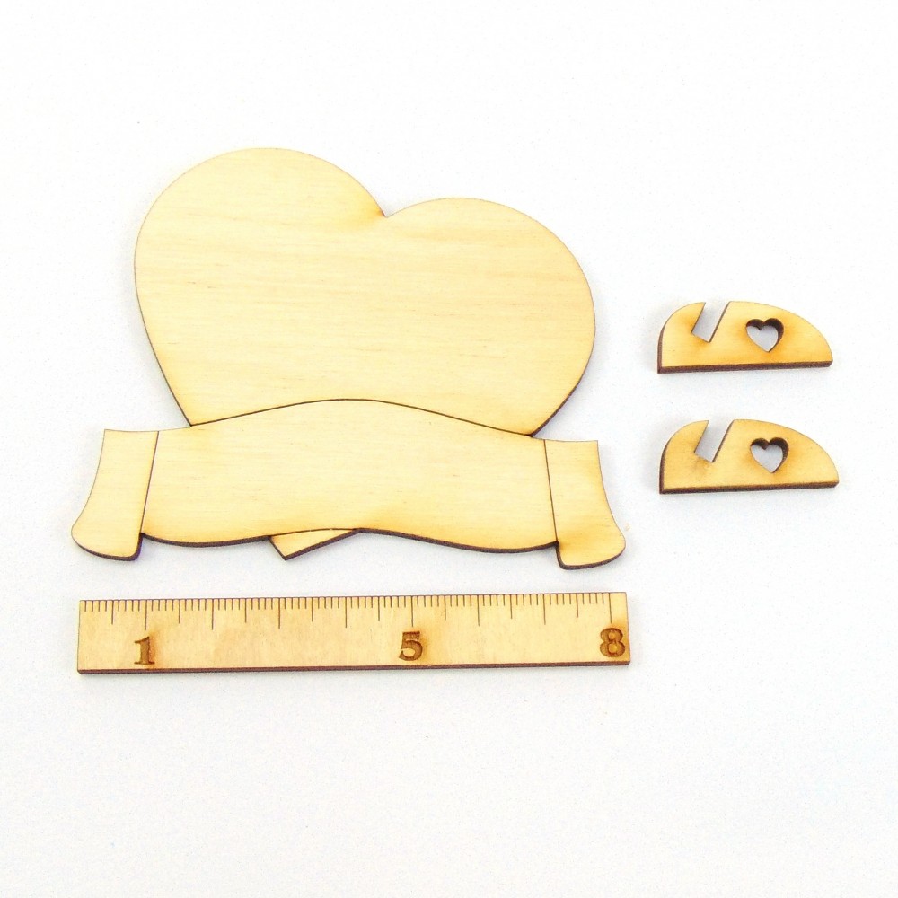 Zwei ineinander verschlungene Holz Herzen aus 3mm Sperrholz mit einer Höhe von 30mm und einer&n..