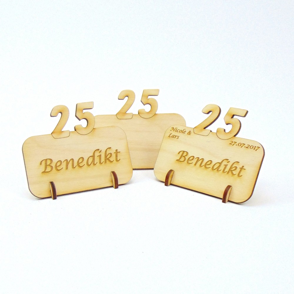 Tischkarten ohne Gravur, mit Namensgravur oder mit individueller Gravur.