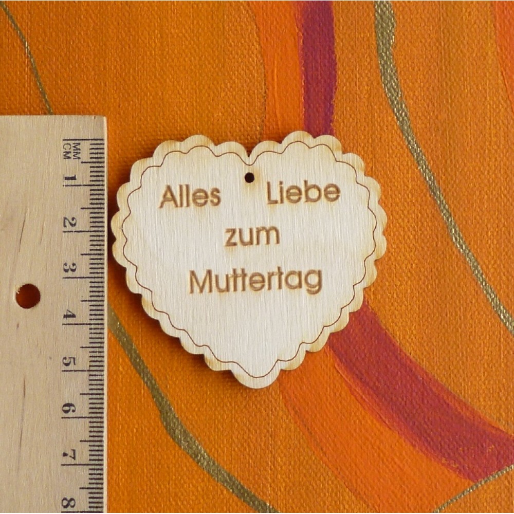 Muttertags Herz aus 3 mm dickem Birkenholz und einer Höhe von 50 mm und eine Breite von 50 mm, inklu..