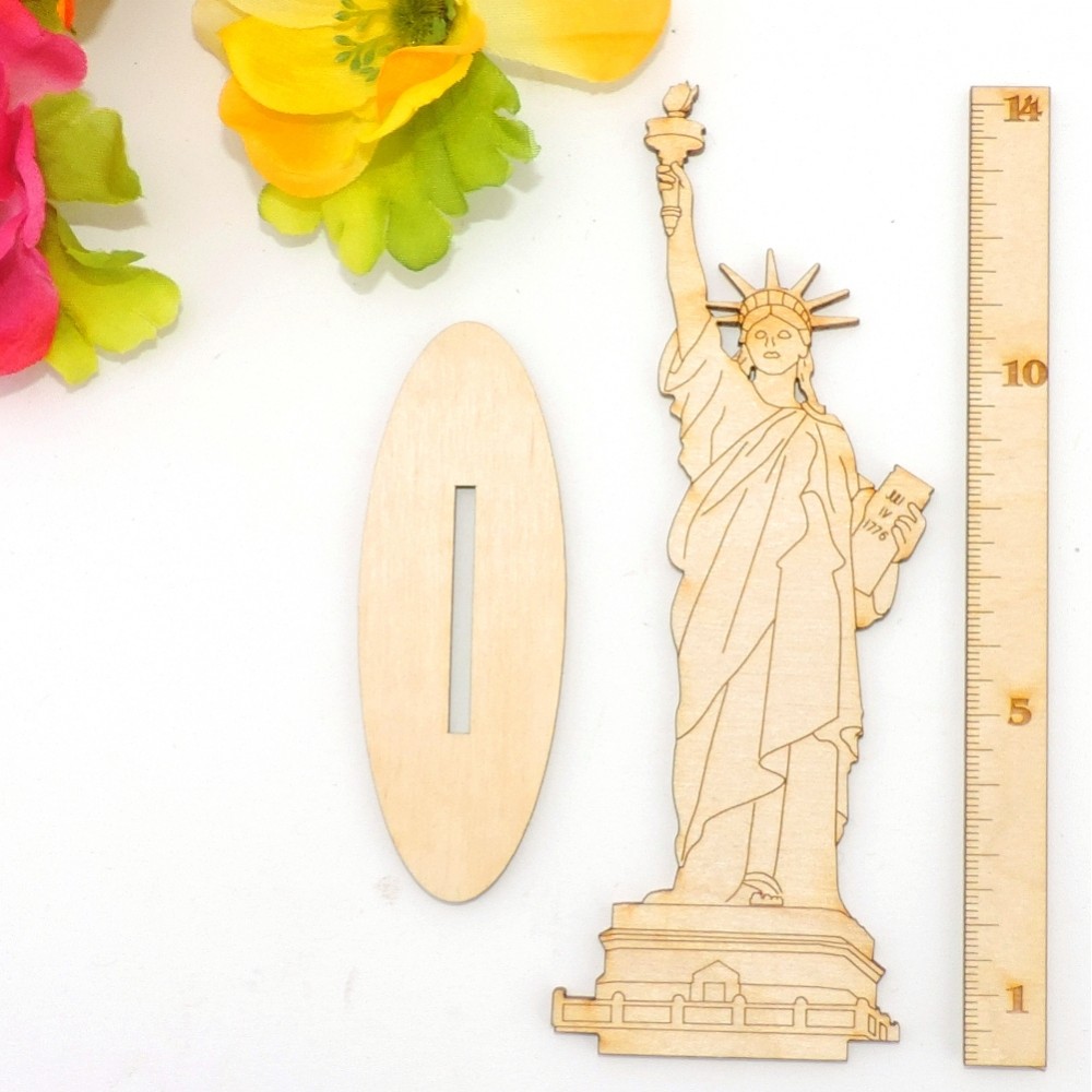 Die wunderbar ausgeschnittene Freiheitsstatue ist 143cm hoch, 54mm breit, hat einen sicheren Standfuß und wird nur zusammen gesteckt.