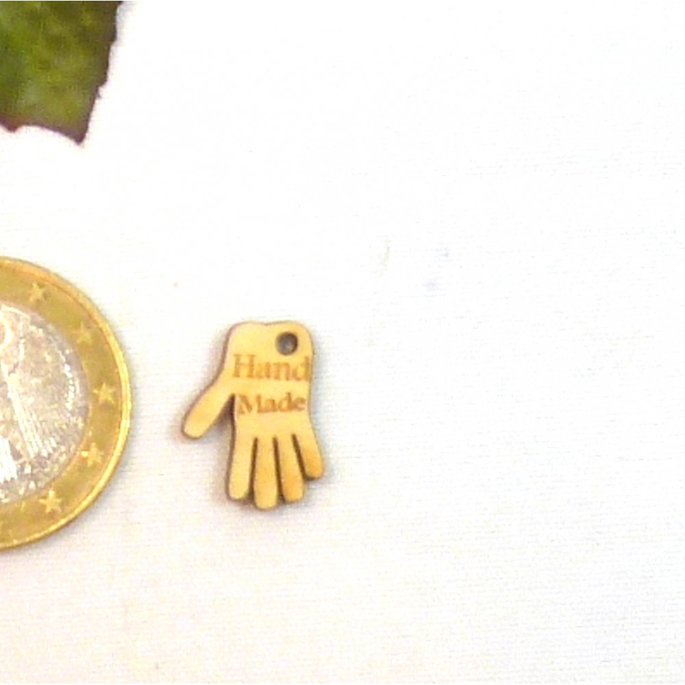 2 Hände in der Höhe von 15 mm und Breite von 11 mm mit der Aufschrift Hand Made.