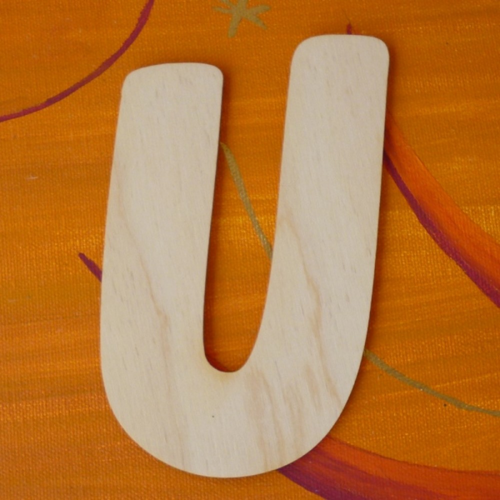 Holzbuchstabe U aus 3mm dickem Birkenholz, Höhe 12 cm.