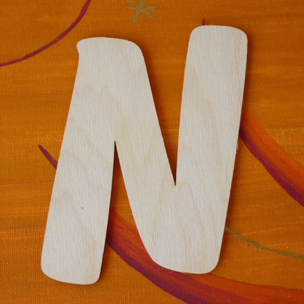 Holzbuchstabe N aus 3mm dickem Birkenholz, Höhe 12 cm.