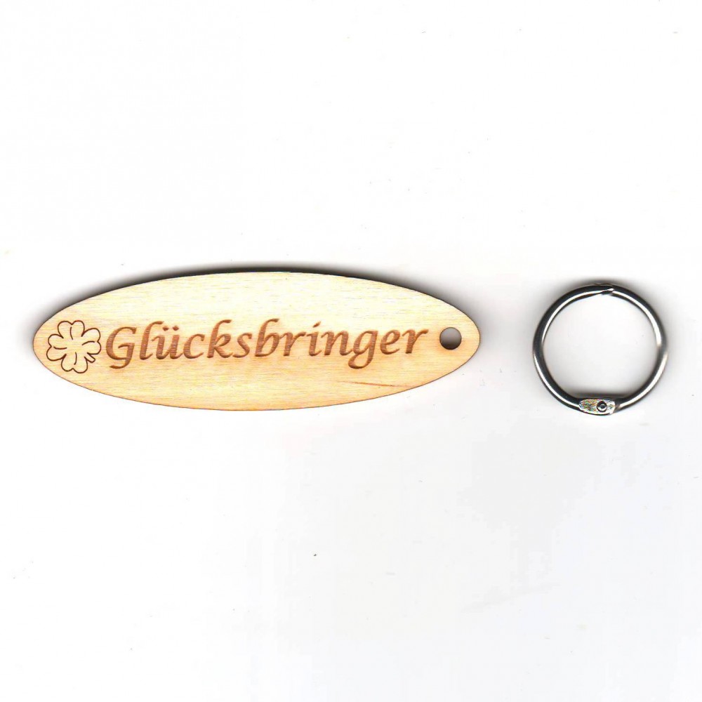 Schlüsselanhänger mit der Gravur "Glücksbringer".