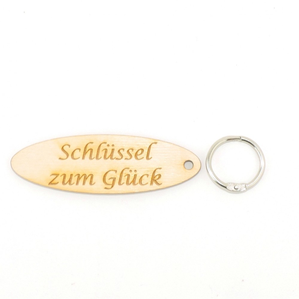 Schlüsselanhänger mit der Gravur "Schlüssel zum Glück".