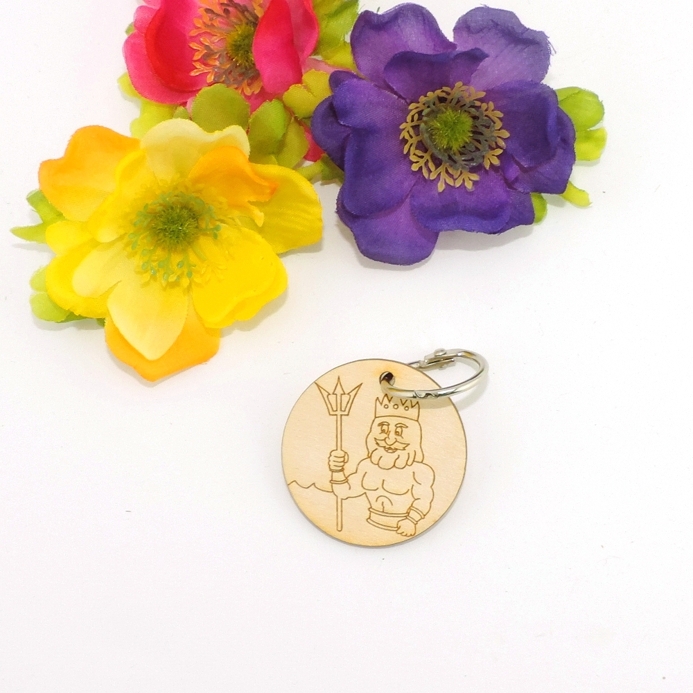 Der Schlüsselanhänger ist 44 mm im Durchmesser, inklusive Schlüsselring.