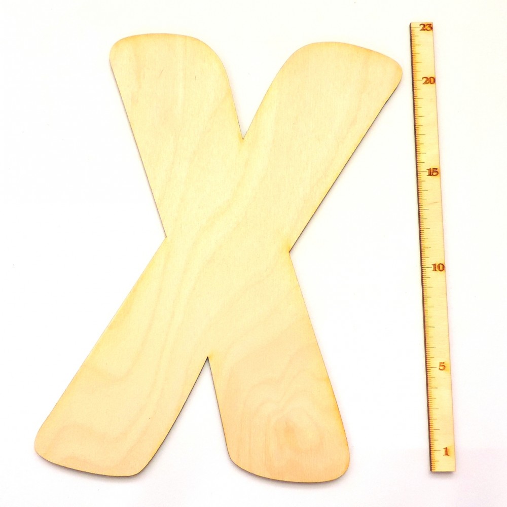 Holzbuchstabe X aus 3 mm Birkenholz, Höhe 230 mm.