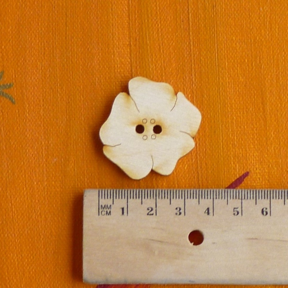 Ein Knopf in der Form einer Blüte. Breite 3,5 cm, Höhe 3,3 cm