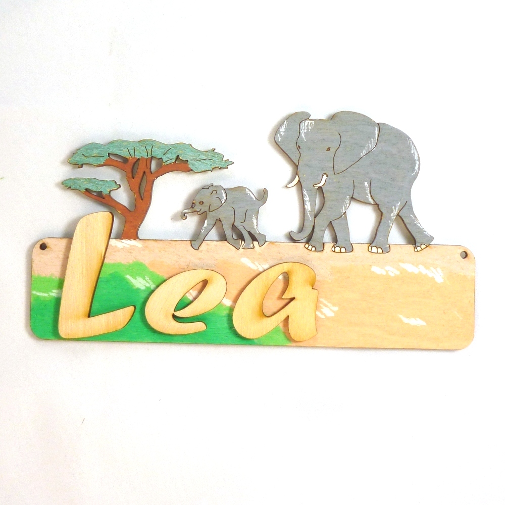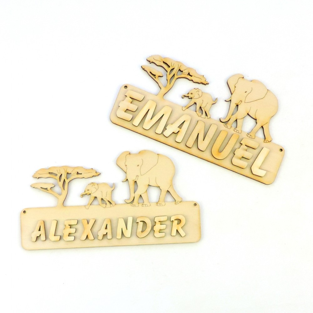 Türschild Elefantenmama und Baby mit Baum incl. Buchstaben