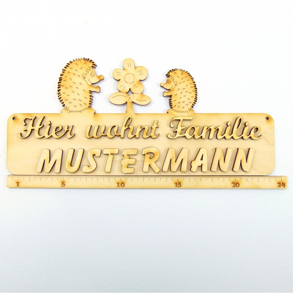 großes Türschild mit 2 Igel, Blume 235mm für Ihren Namen