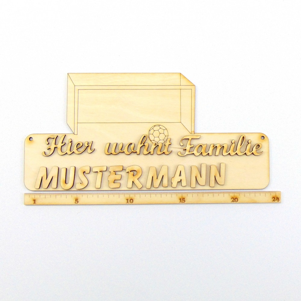 Sie bekommen "Hier wohnt Fam." oder "Hier wohnen" plus bis zu 14 Buchstaben in 30 mm höhe für Ihren Familiennamen.