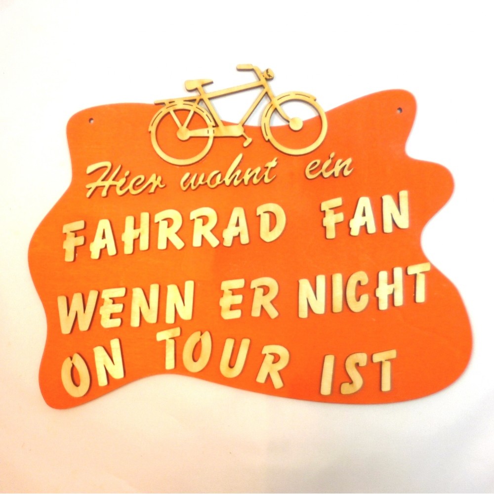 Spruchtafel Türschild Hier wohnt ein Fahrrad Fan wenn er nicht on Tour