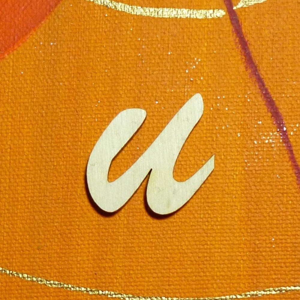 Schreibschrift - u aus 3mm Birken Holz Höhe 28 mm, Breite 30 mm.