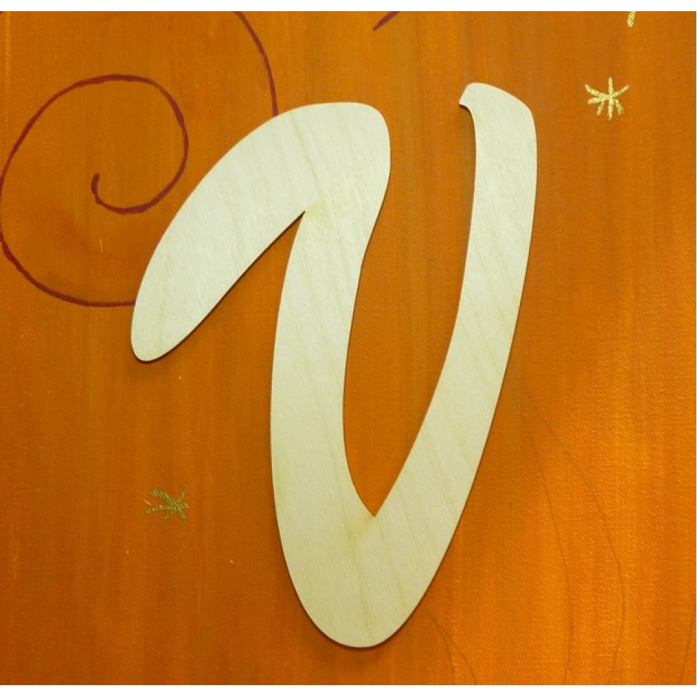 Schreibschrift  - V aus 3mm Birken Holz Höhe 210mm Breite 170mm.