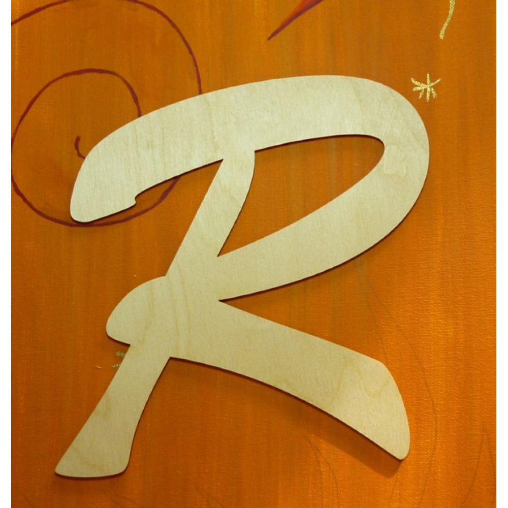 Schreibschrift - R aus 3mm Holz Höhe 220mm Breite 220mm.