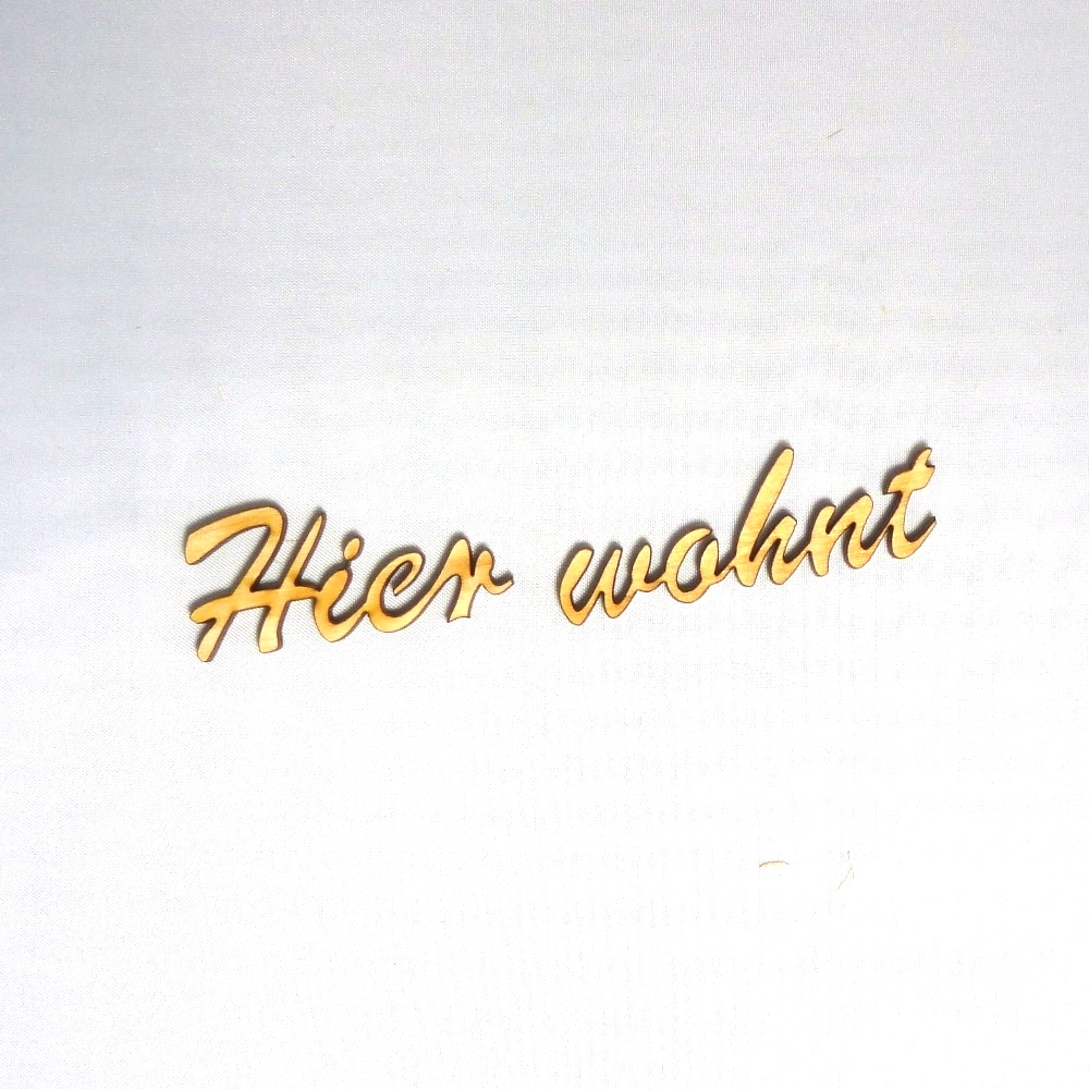 Holzschriftzug Hier wohnt aus 3mm Sperrholz, Höhe 20mm, Länge 100mm