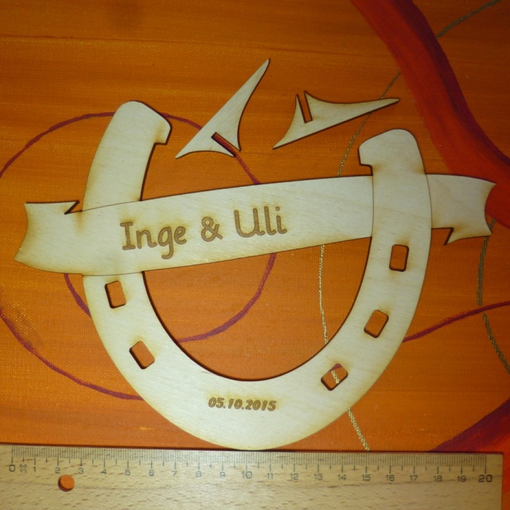 Hufeisen 200mm mit den Namen der Brautleute und Datum