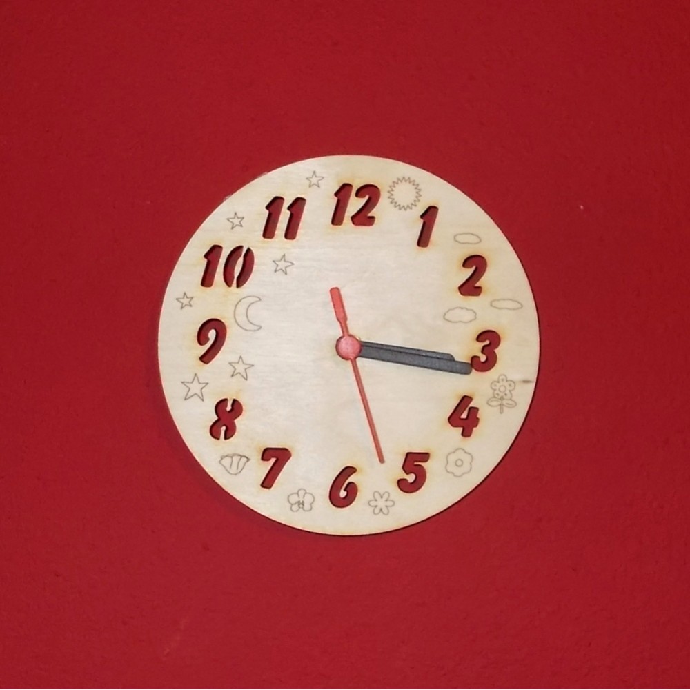 Schöne Sonne Mond und Sterne Uhr mit Uhrwerk Die Uhr ist im Durchmesser 160 mm aus Birkenholz und..