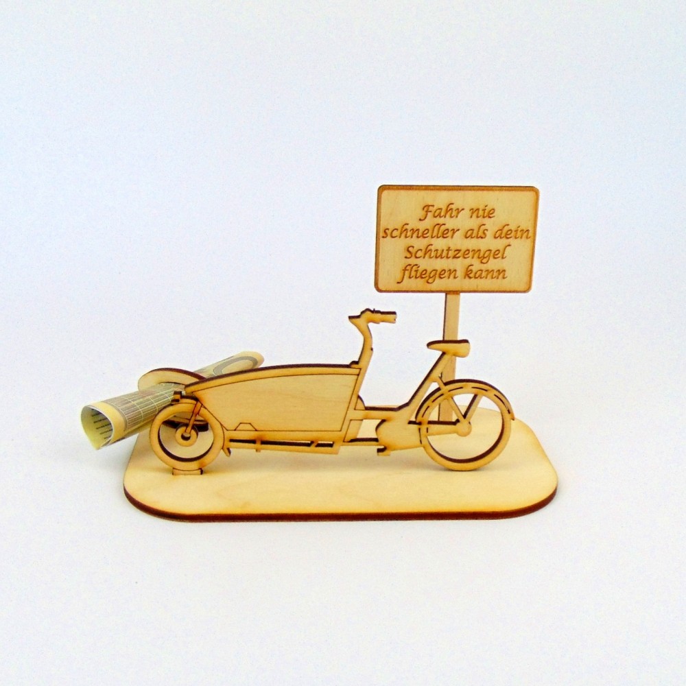 Lastenrad mit verschiedenen Ortsschilder Geld- Gutscheingeschenk