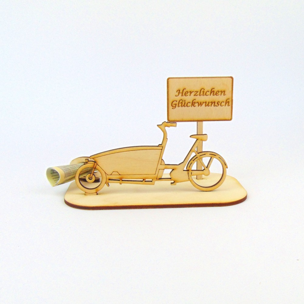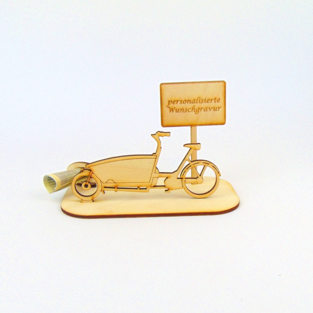 Lastenrad mit verschiedenen Ortsschildern Geld- Gutscheingeschenk Fahrrad