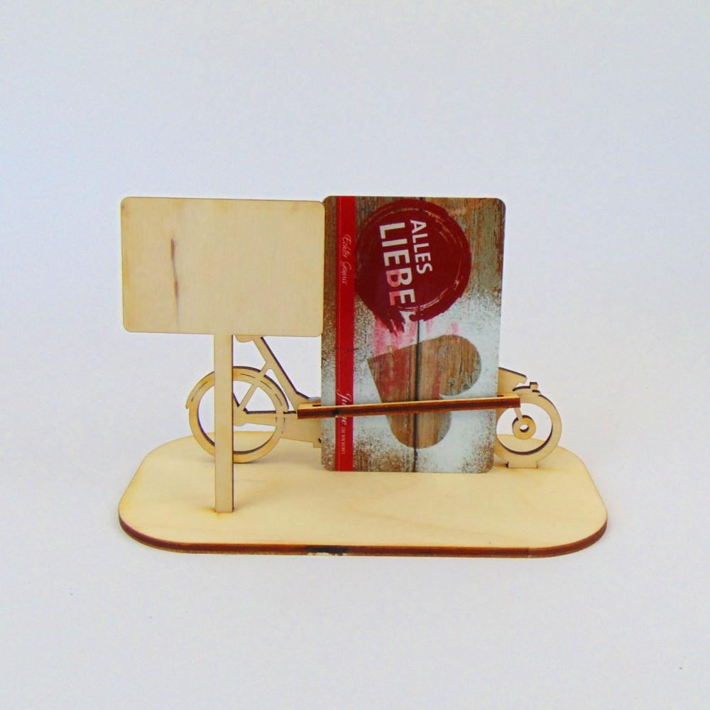 Stehendes Lastenrad mit Ortsschild - Auswahl als Geld- oder Gutscheingeschenk Es besteht aus 5 Te..