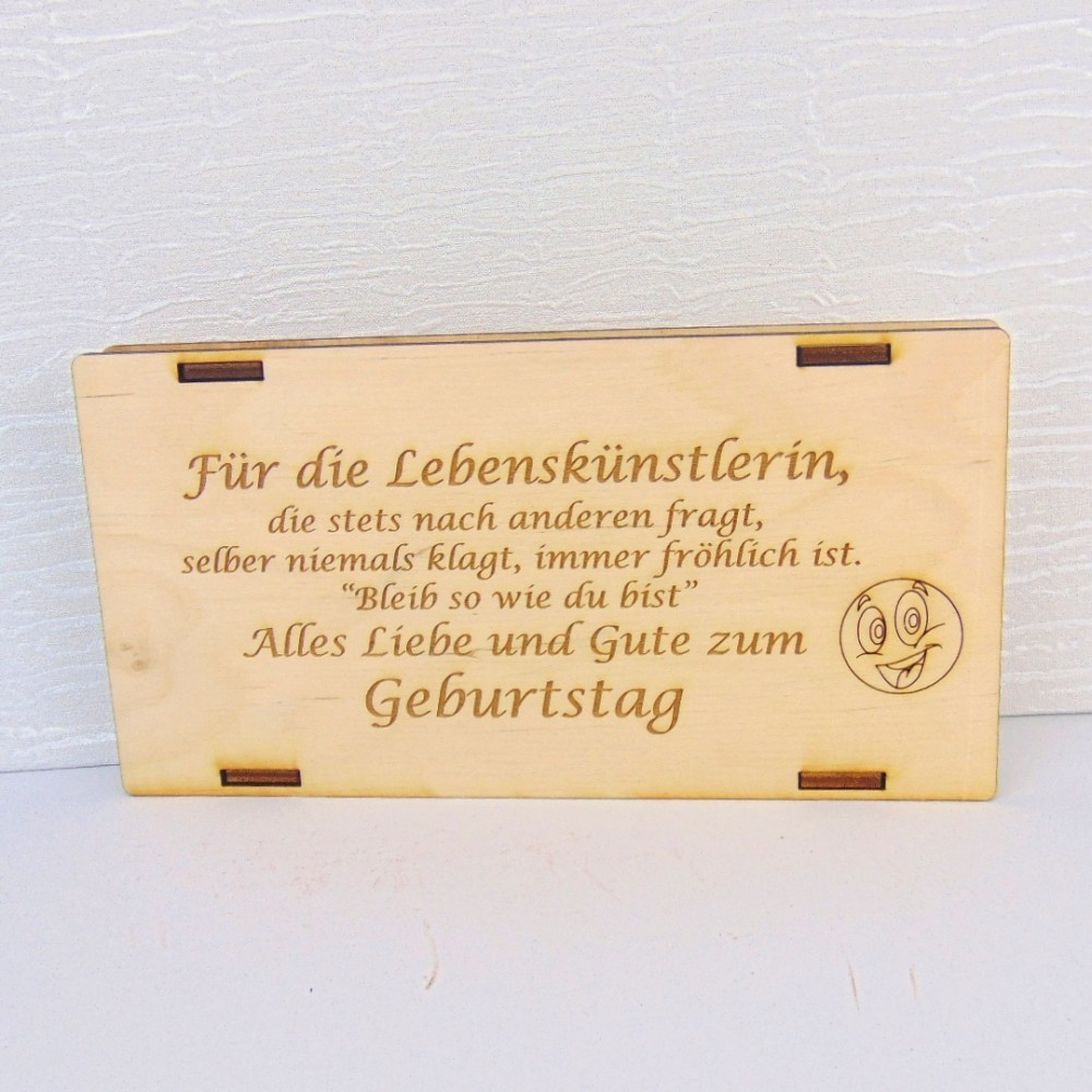 Holzkiste für Tafel Schokolade Geburtstagsgeschenk " Lebenskünstler "