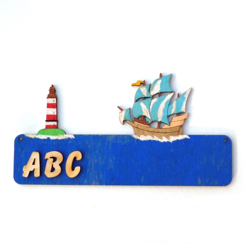 Türschild Dreimaster Schiff auf dem Meer Walflosse incl. Buchstaben
