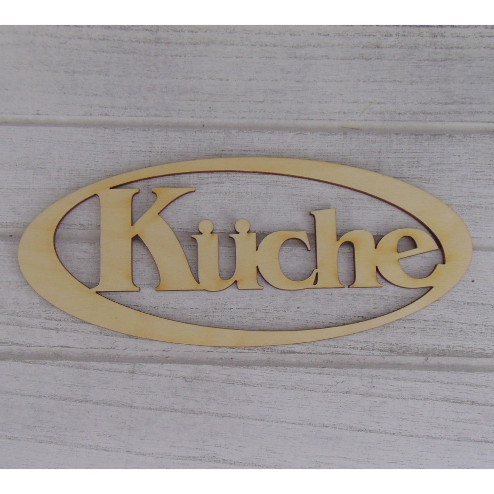 Türschild Küche aus 3mm Birkenholz, Breite 180 cm, Höhe 76mm,