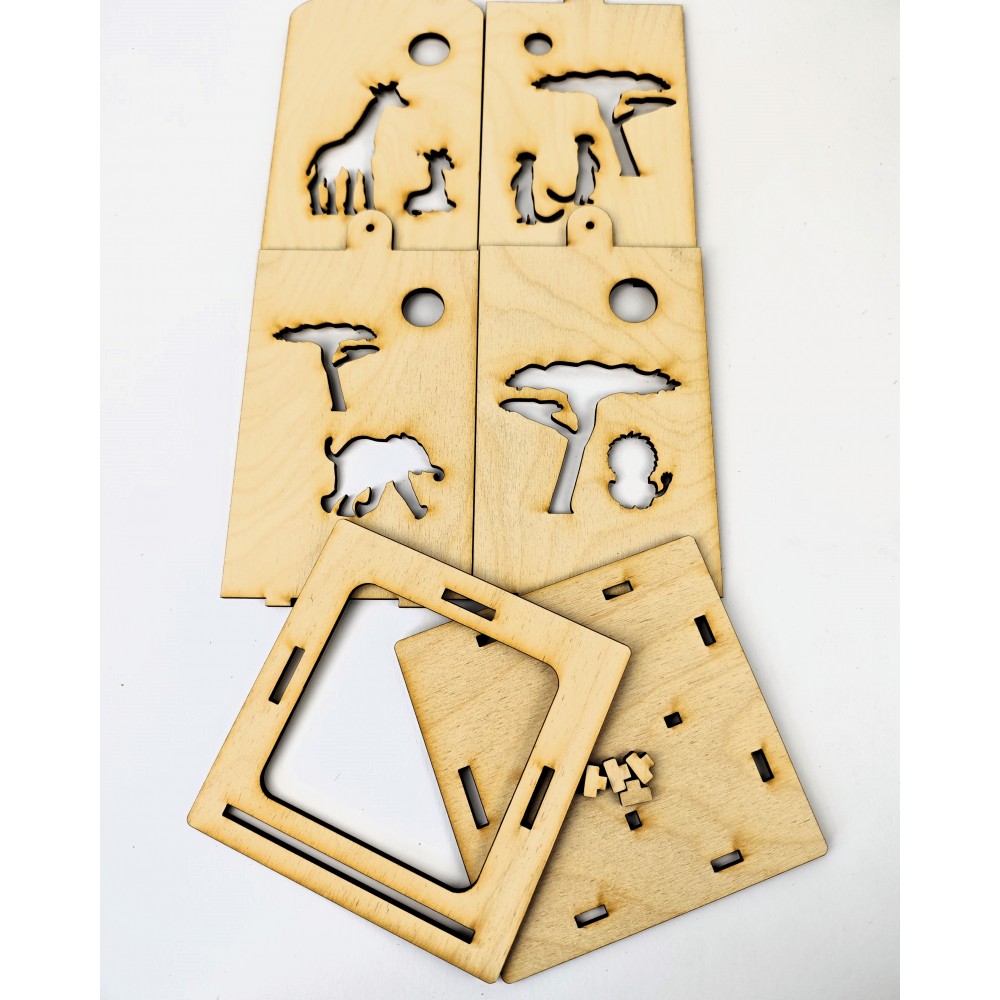 Sie besteht aus Boden, Deckel, 4 Seitenteilen und 4 Teelichthaltern.