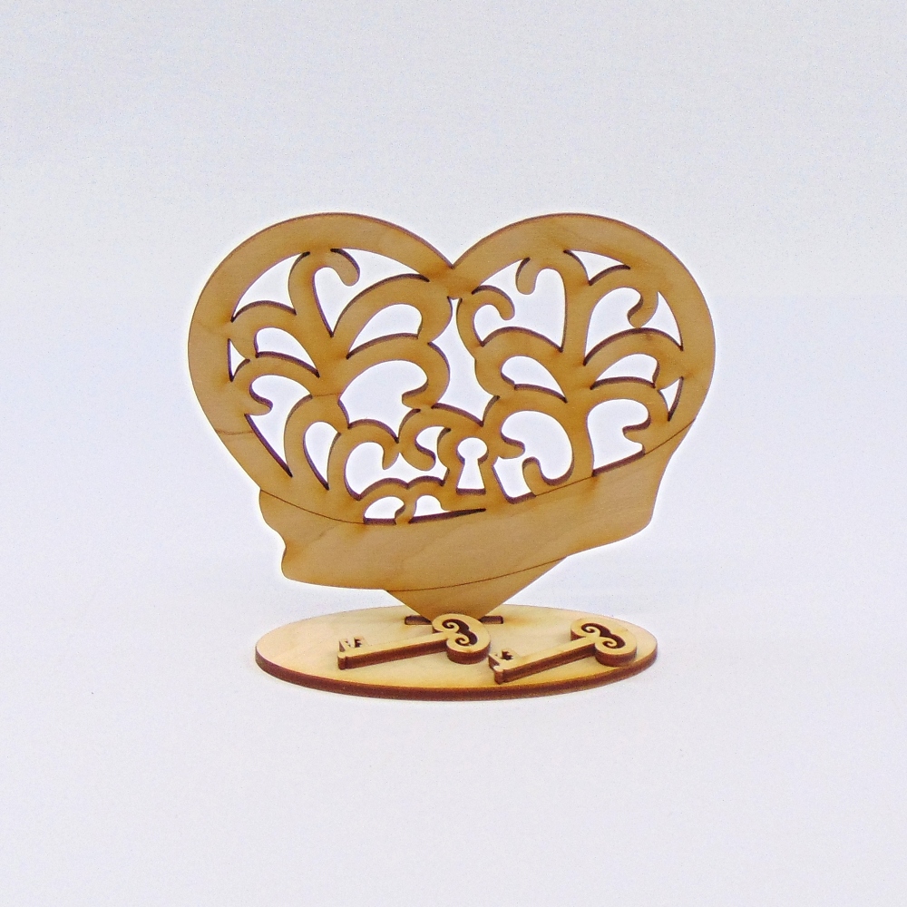 Im Set enthalten ist 1 Herz, 2 Schlüssel, sowie eine Unterplatte zum Hinstellen.