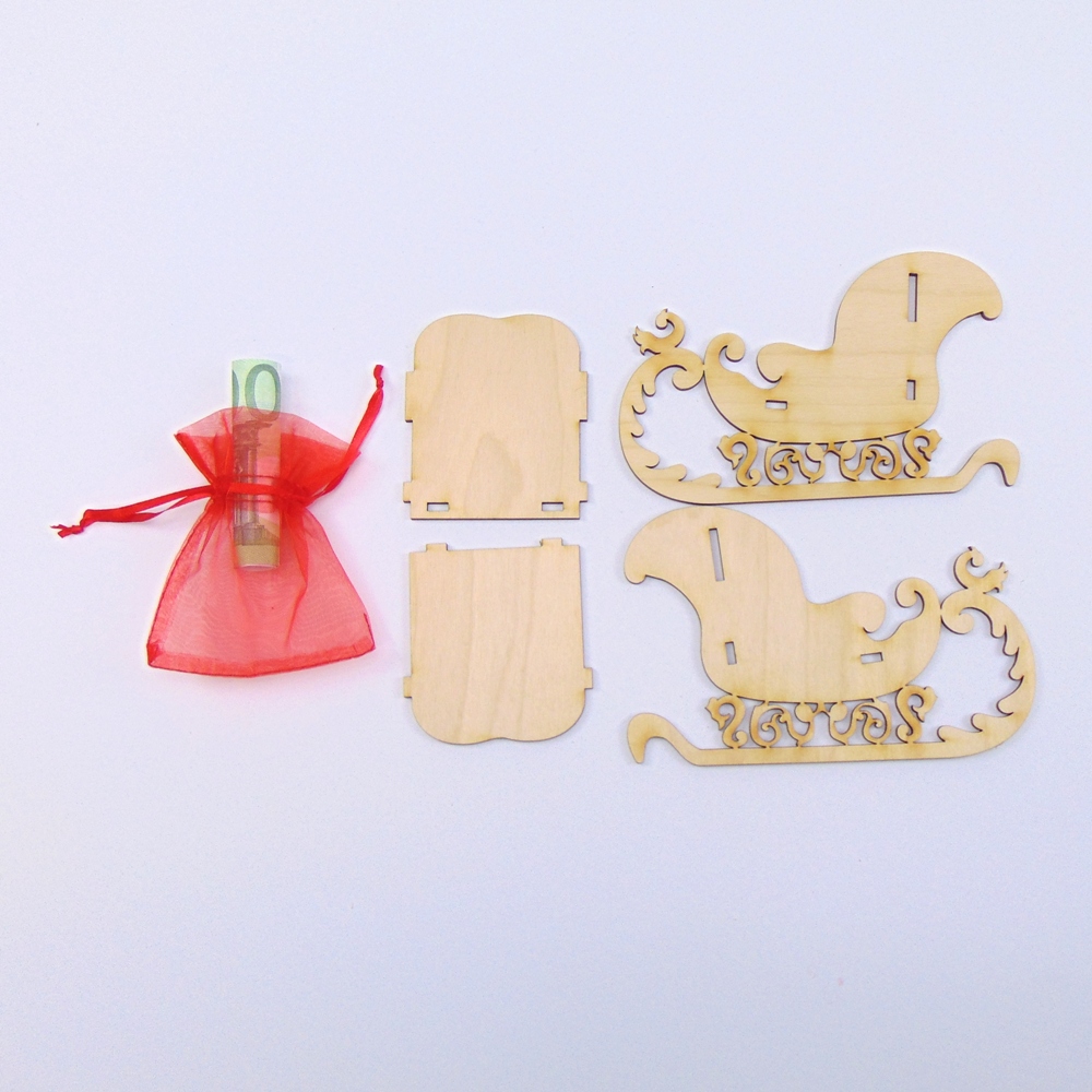 Weihnachtsschlitten Nostalgie 3D Bausatz Geldgeschenk 15,5 x 10 cm
