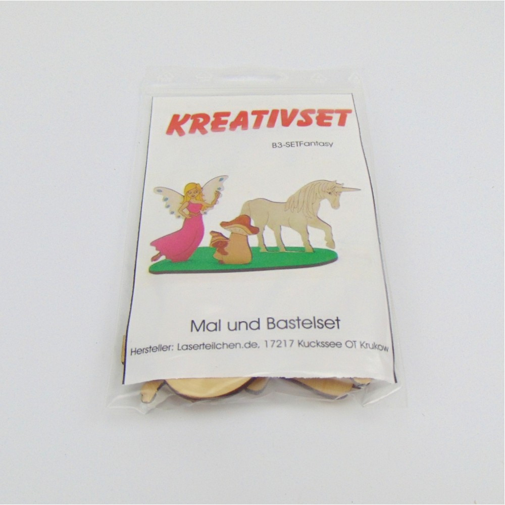 Das Fantasy Bastelset ist ein schönes Geschenk für Kinder, die gerne malen. Wir empfehlen zum Bemalen der Holzteilchen Buntstifte, Filzstifte, Acryl Farben oder die schönen POSCA Stifte. Siehe Farben, Bastelzubehör => Farben, Stifte.