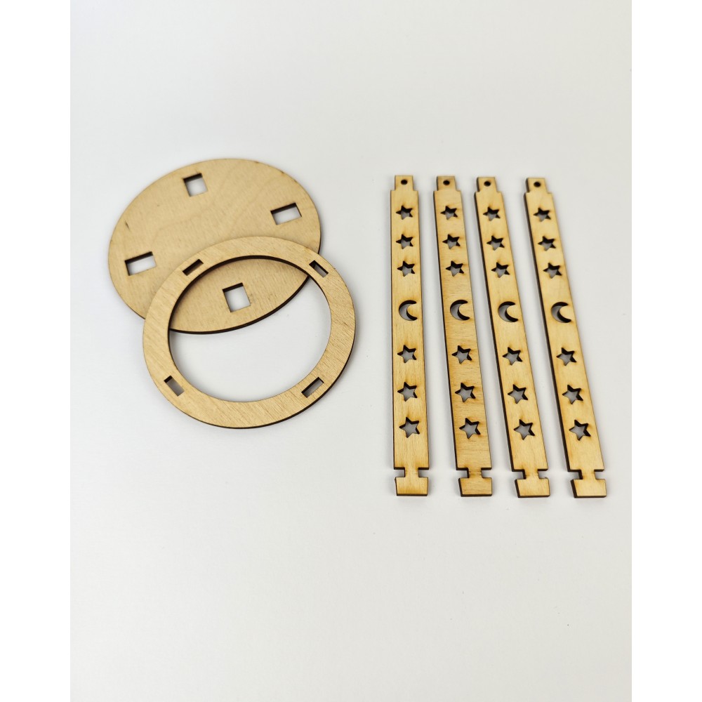 Unsere Laterne kommt als Bausatz. Sie besteht aus Boden, Deckel, 4 festen Seitenteilenhalter. ..
