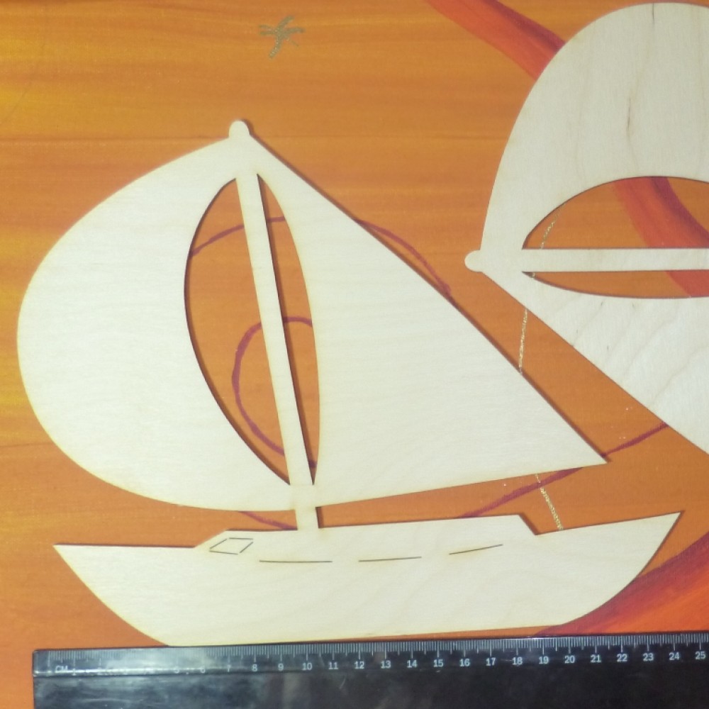 Segelboot im Wind aus 3 mm Birkenholz, Höhe 200 mm, Breite 250 mm