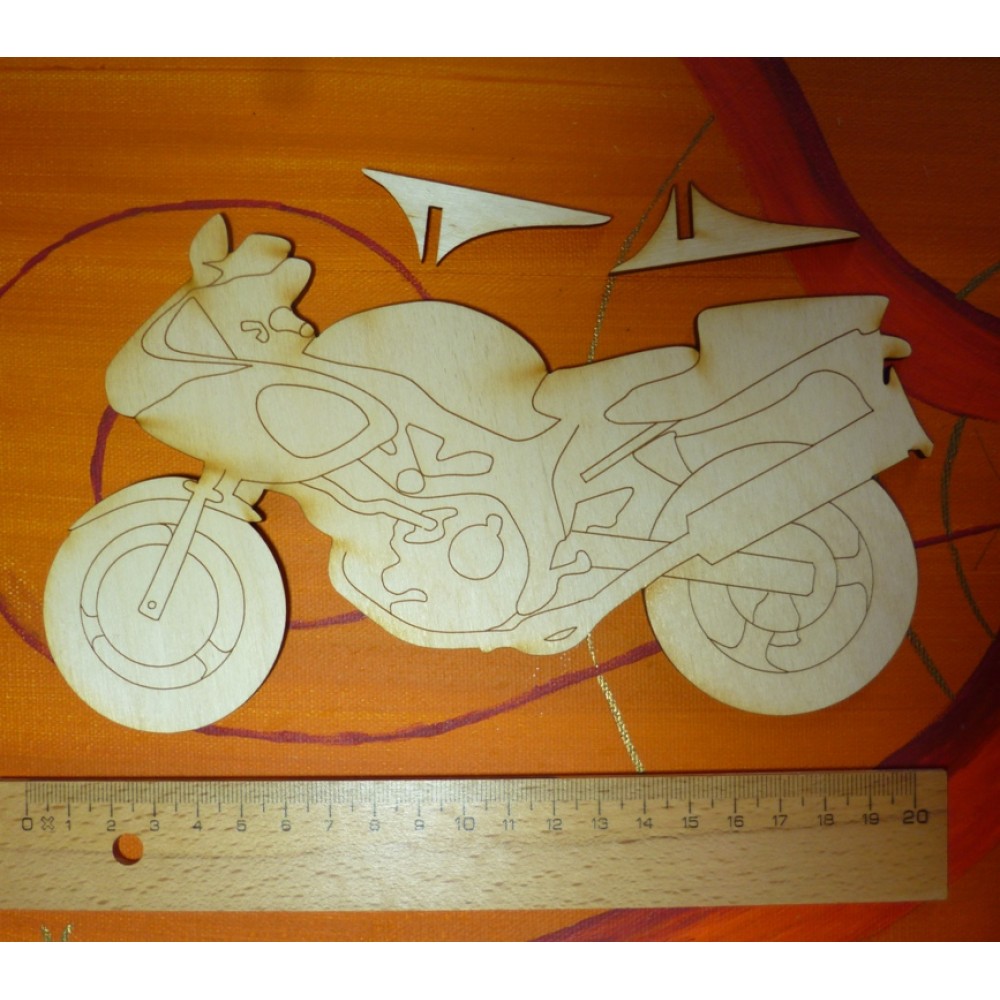 Motorrad aus 3 mm dickem Birkenholz, Breite 200 mm, Höhe 100 mm, mit Loch zum Aufhängen.