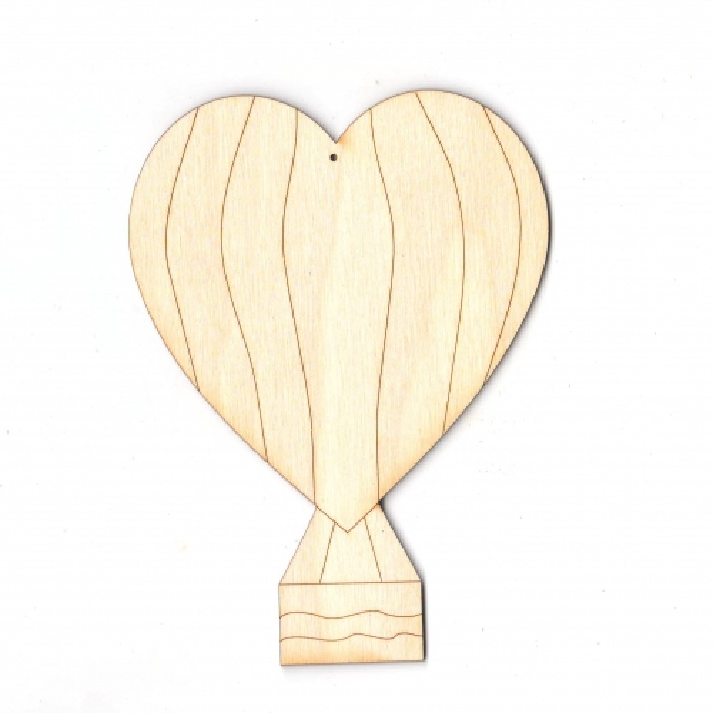 Heißluftballon in der Form eines Herzens aus 3 mm dickem Birkenholz, Höhe 150 mm, Breite 110 mm. D..