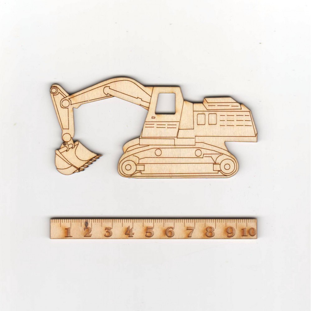 Bagger aus 3 mm dickem Birkenholz, Höhe 50 mm, Breite 100 mm.