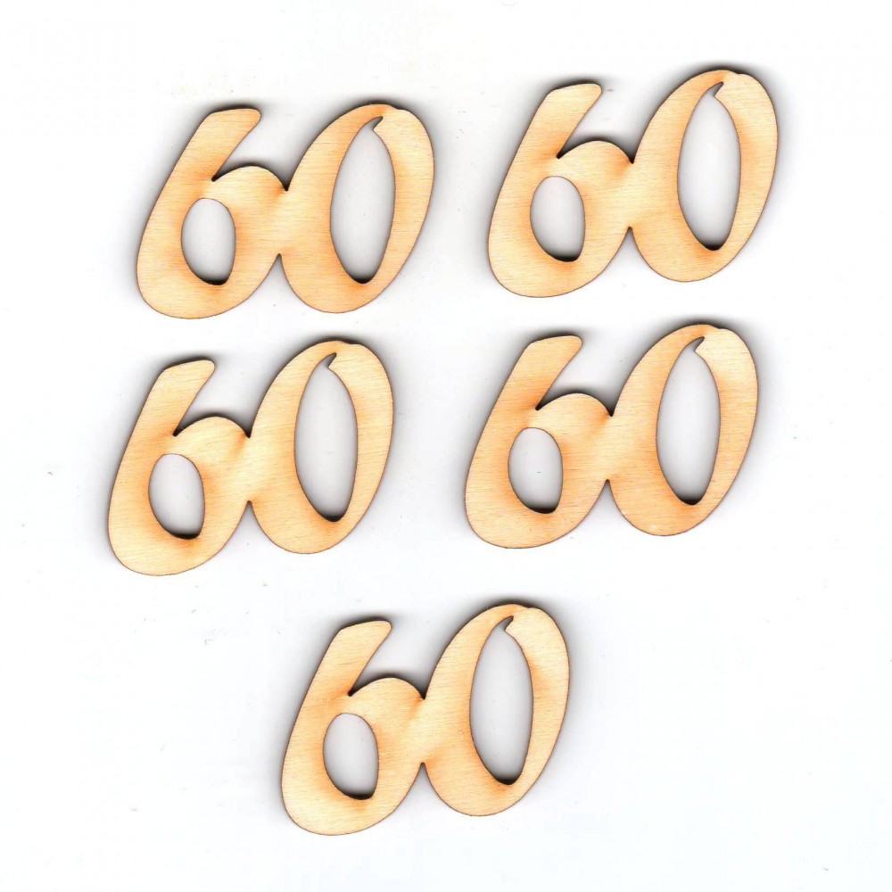 Die Zahl 60 aus 3 mm dickem Birkenholz einer Höhe von 150 mm und einer Breite von 202 mm, inklusive ..